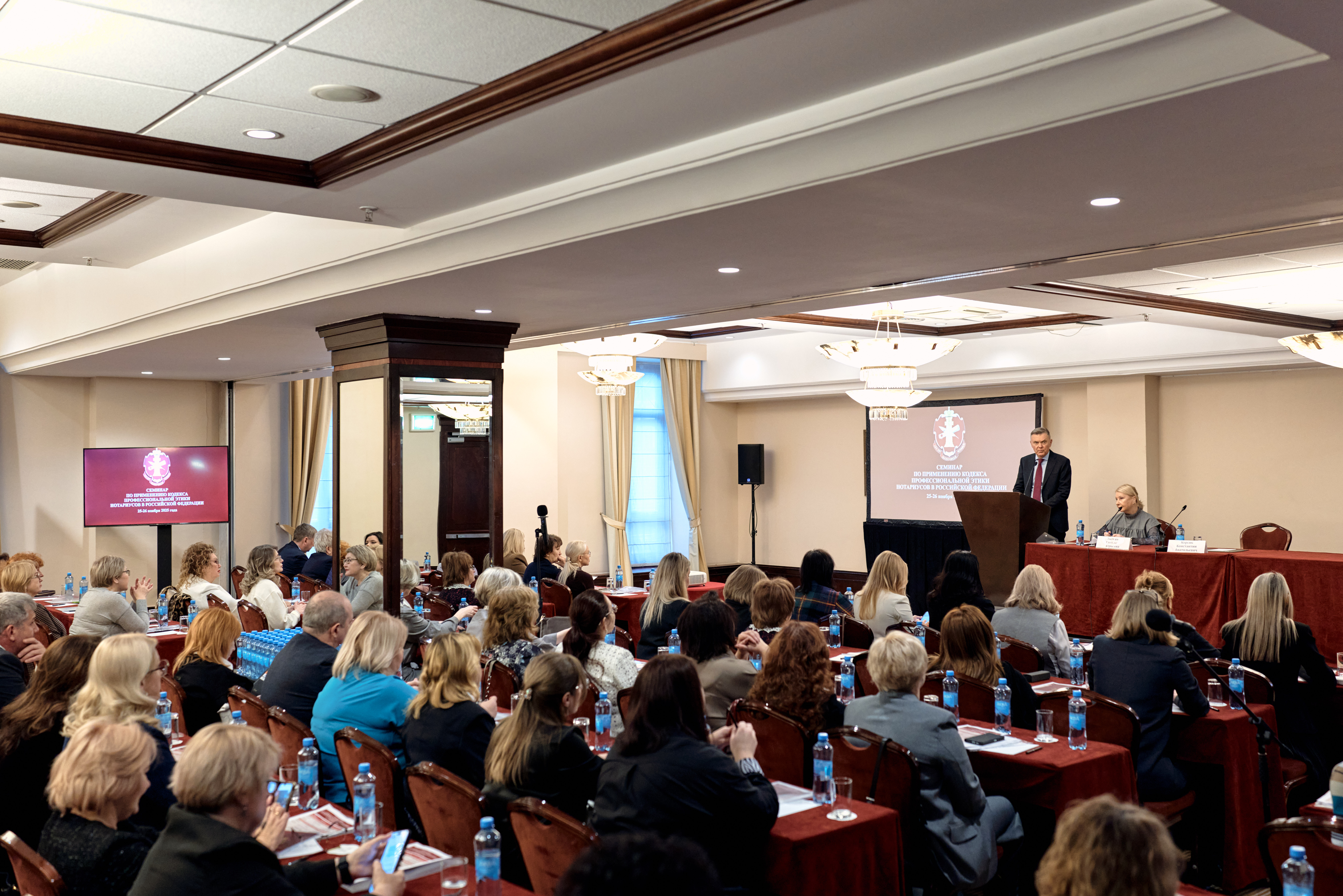 С приветственным словом к участникам семинара обратился президент Федеральной нотариальной палаты Константин Корсик«Вопросы этики играют большую роль для развития института нотариата, для формирования позитивной оценки нашей работы как со стороны государства, так и со стороны общества. Соблюдение единых этических стандартов — это необходимое требование для всех членов нотариального сообщества», — подчеркнул глава российского нотариата.